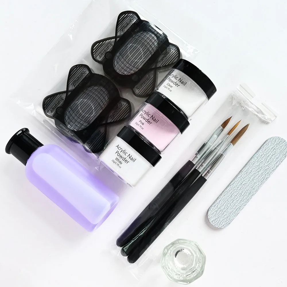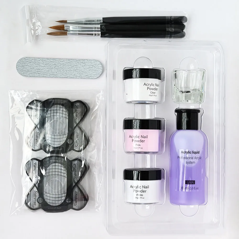 1 Набор акриловой пудры, набор для наращивания ногтей профессиональный мономер (розовый, белый, прозрачный) кристальная пудра и жидкие инструменты для маникюра