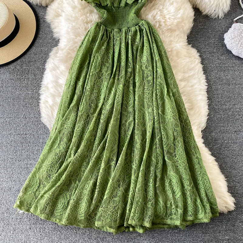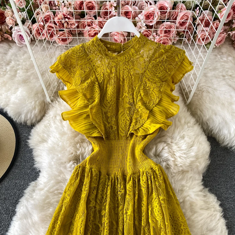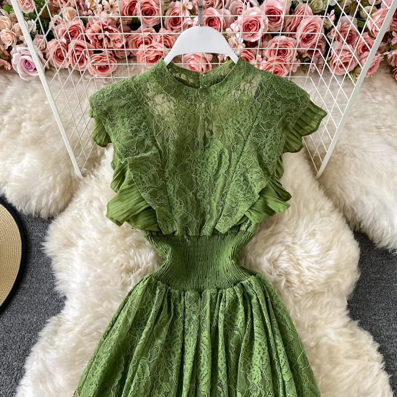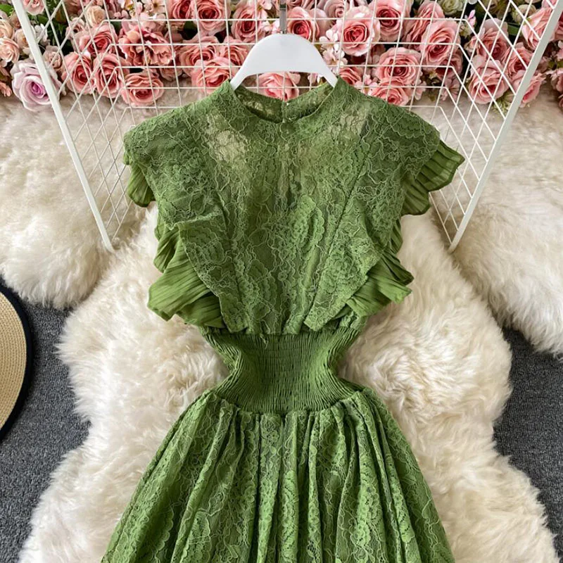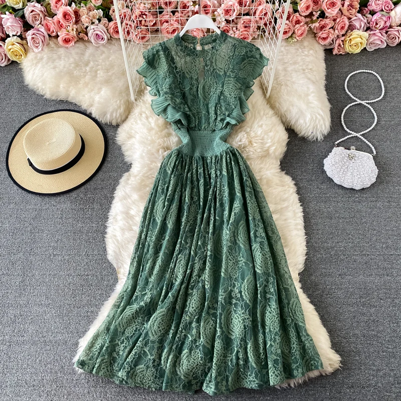 Женское платье-трапеция, однотонное винтажное Кружевное платье миди без рукавов, с круглым вырезом, лето 2021