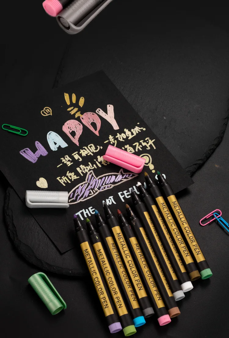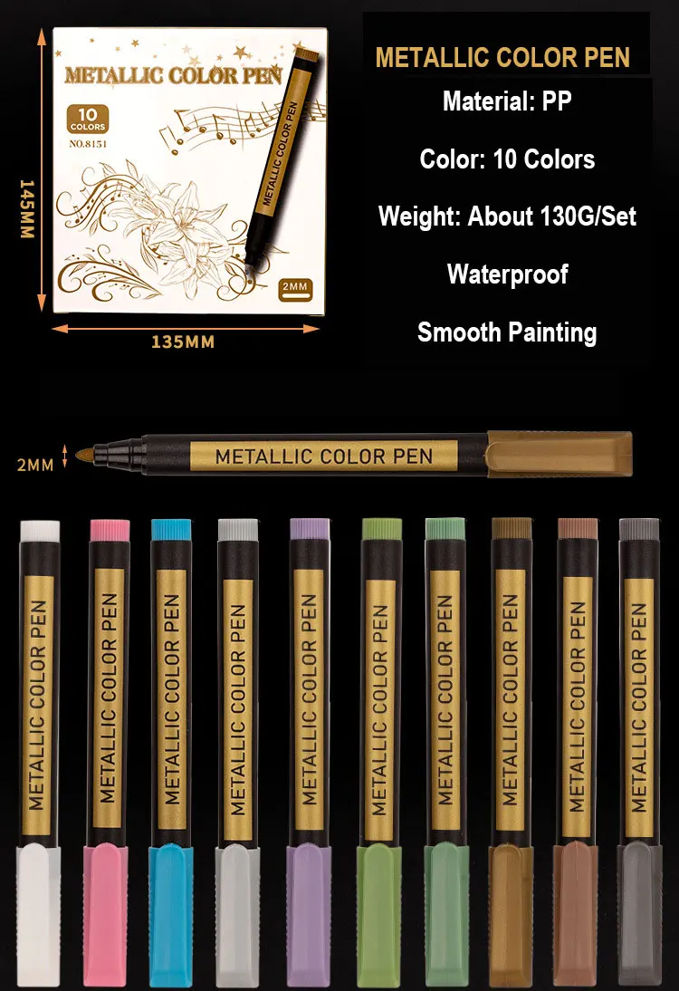 Перманентный металлический маркер 10 шт., ручка для творчества и письма, ручная роспись, для творчества, картонная коробка, эскиз, дизайн на бумажной основе