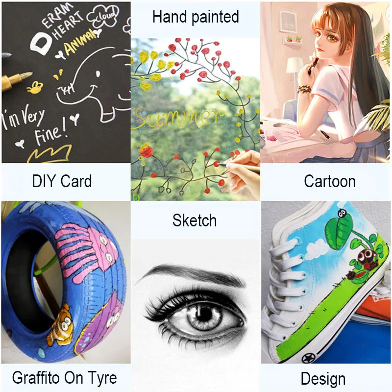 А. Универсальность: использование для DIY карты, ручная роспись, мультфильм, Craffito на шине, эскиз, дизайнB. Карты, каллиграфия и многое другое идеально подходят для рисования, письма, может использоваться в классе или используется для книжных ящиков для взрослых.C. Высокое качество, чернила для воды, не содержащие кислоту и нетоксичные, быстросохнущие, супергладкие, эргономичный дизайн, светильник-вес, легко держать и невероятно прочныйРучка.D.10 цвета: белый, розовый, синий, серебристый, фиолетовый, светильник зеленый, зеленый, золотой, коричневый, черный.E. Размер: около 14 см.