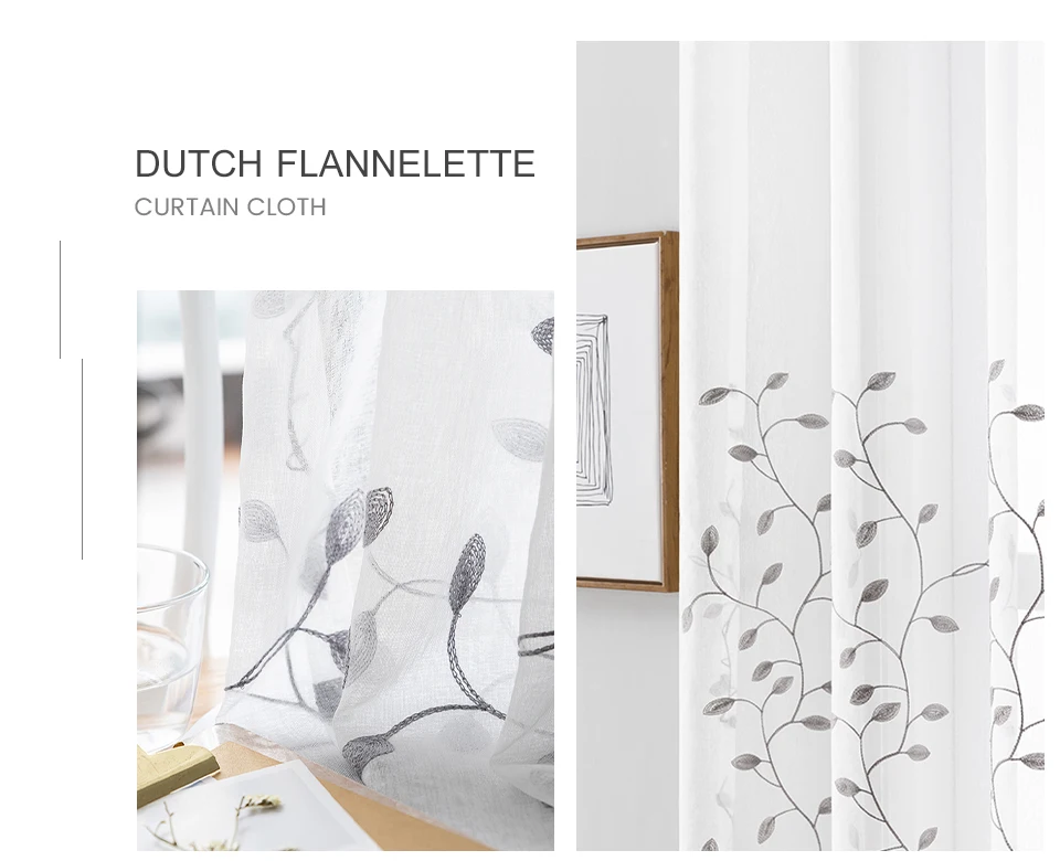 Шторы LISM с вышивкой листьев, прозрачные тюлевые занавески из вуал...