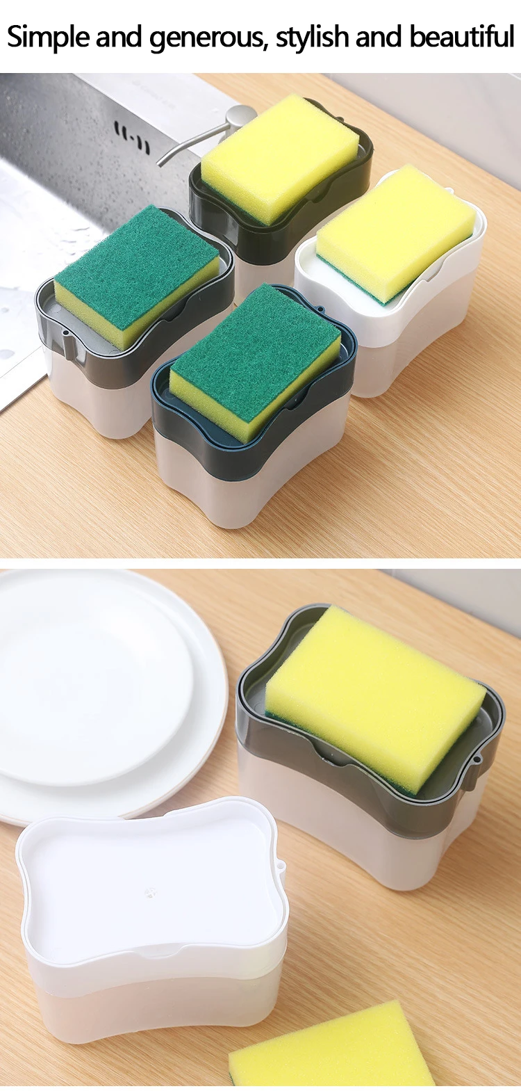 Диспенсер для жидкого мыла 2 в 1, пластиковая коробка для губки пресс-типа органайзер для мыла