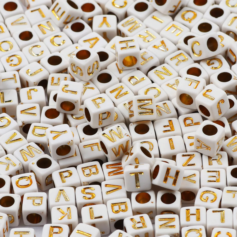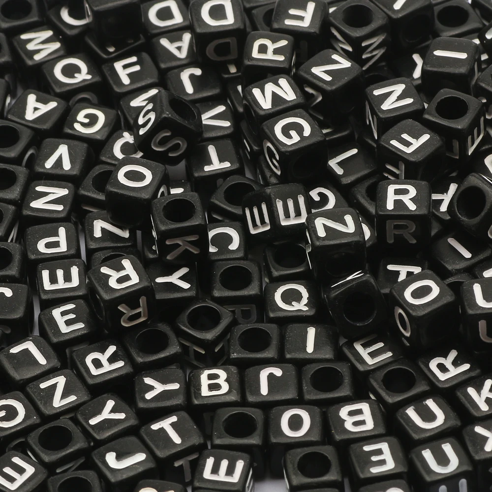 Белые квадратные акриловые бусины с буквами 6x6 мм, бусины с буквам...