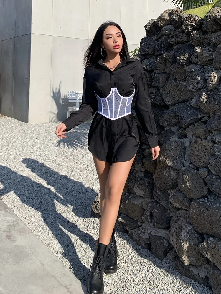 Корсет женский в стиле панк, модный прозрачный сетчатый корсет с за...