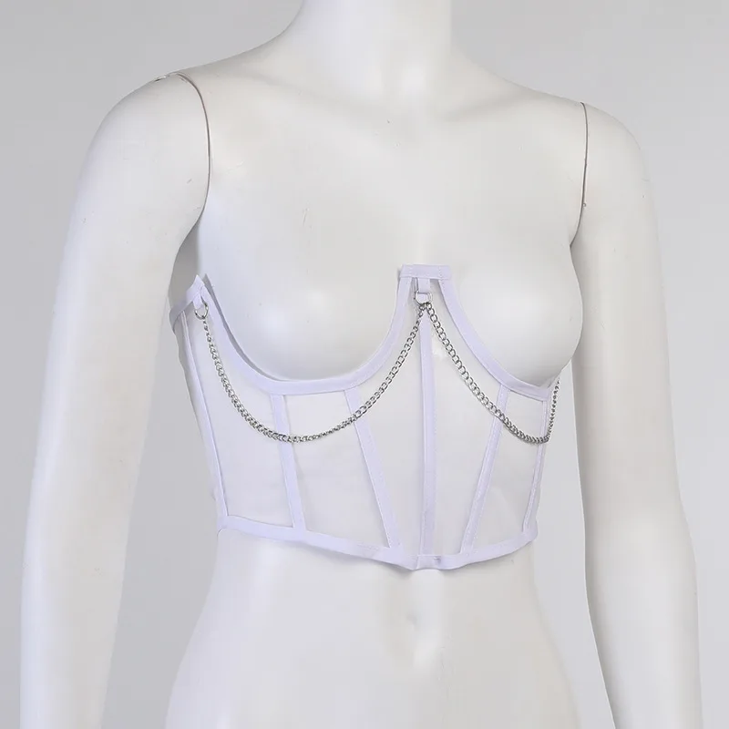 Женский сетчатый укороченный корсет с металлической цепочкой
