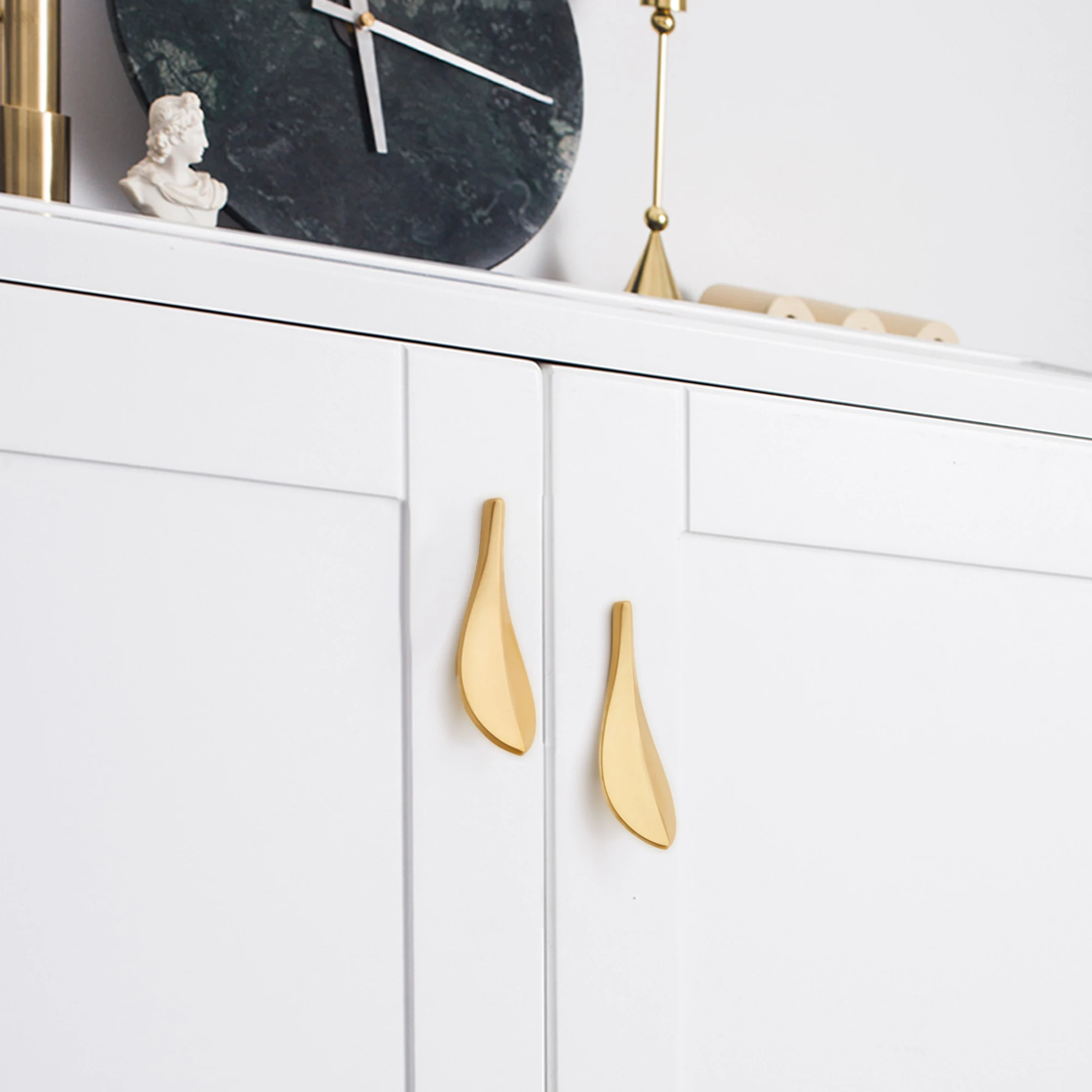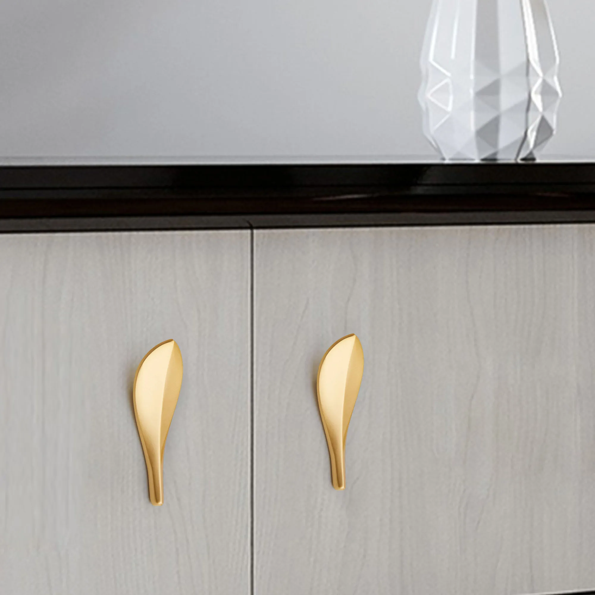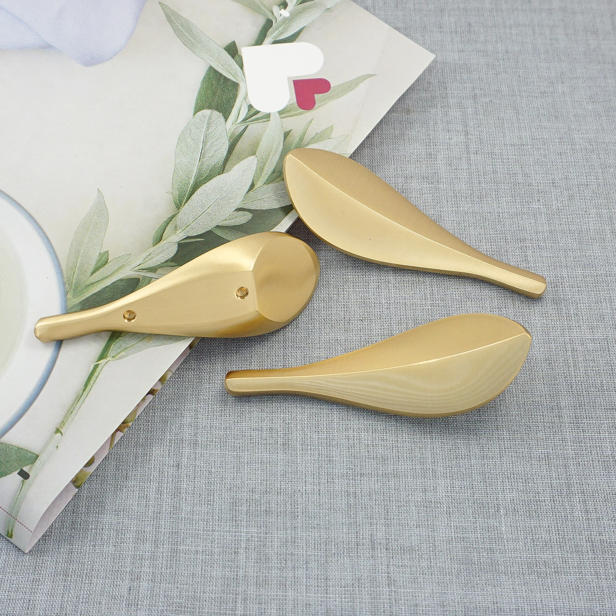 Мебельные ручки в форме листа MFYS, латунная ручка для кухонного шкафа в современном стиле, 1,26 дюйма, ручка для выдвижных ящиков, золотая фурнитура для шкафа, чулана