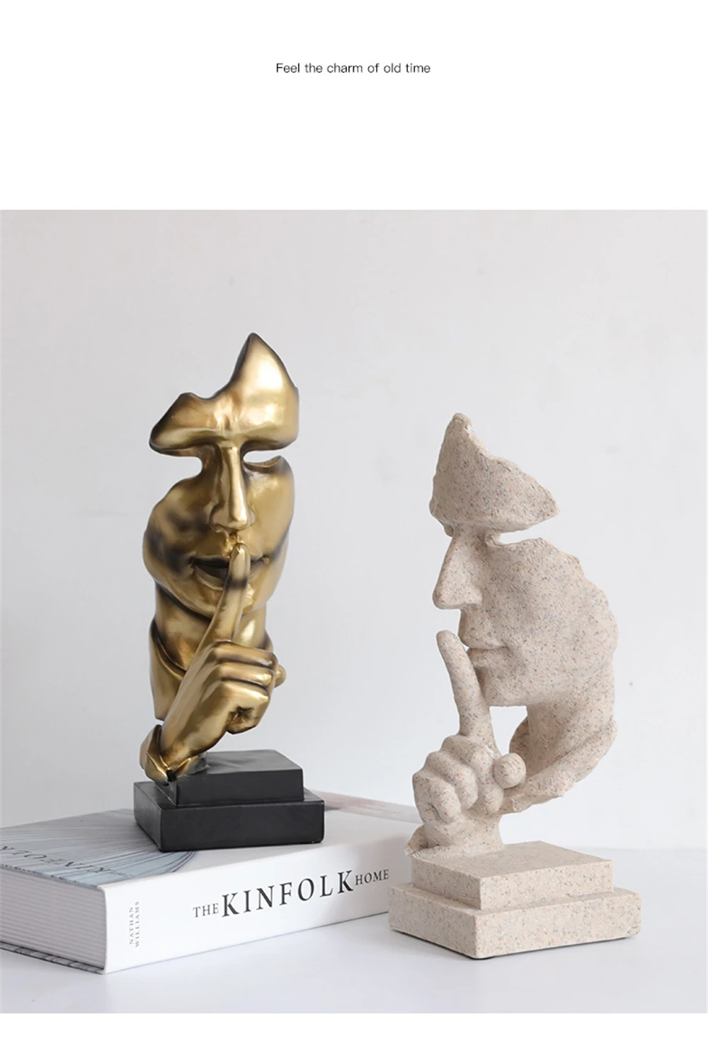 Фигурки из смолы в стиле ретро тишина-золото, оригинальные декорати...