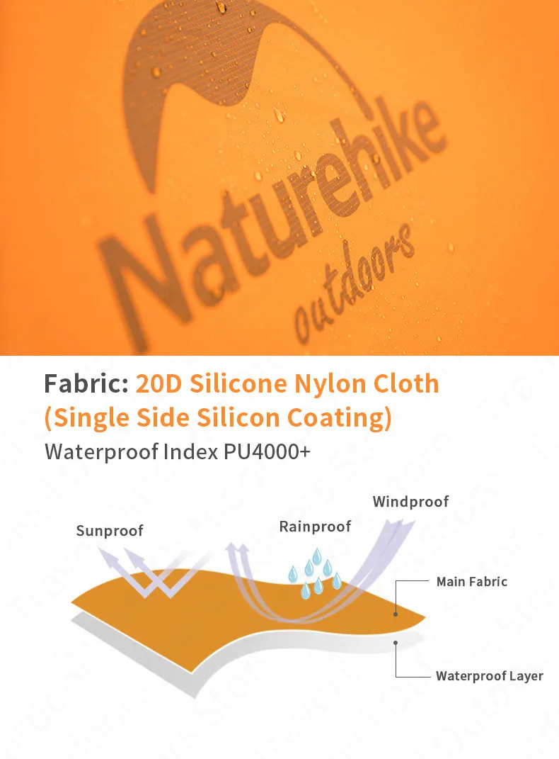 Внешняя палатка: 20D нейлоновая Кремниевая ткань с покрытием (водонепроницаемая PU4000 +)