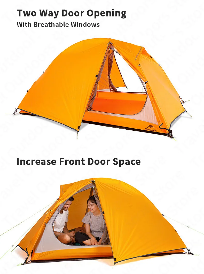 Палатка Naturehike pu400 мм туристическая ультралегкая, портативная двухместная, 20D, силикон, 1,5 кг, для велоспорта, походов, отдыха на открытом воздухе