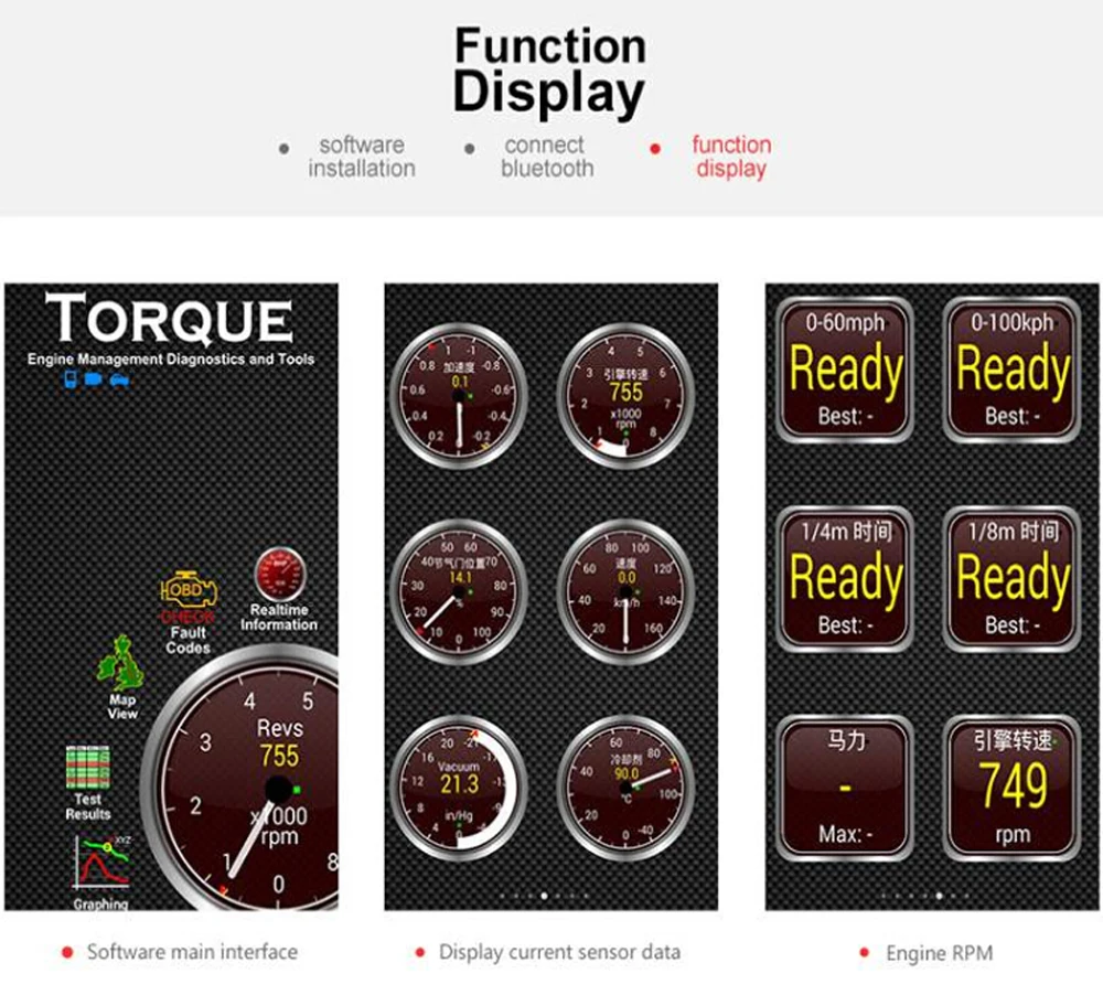 Это программное обеспечение ELM327 suport TORQUE для сотовых телефонов Android, программное обеспечение OBDscope для сотовых телефонов Symbian system, сотовых телефонов PPC(Windows Mobile) system, ScanMaster-ELM для ПК и т. д.