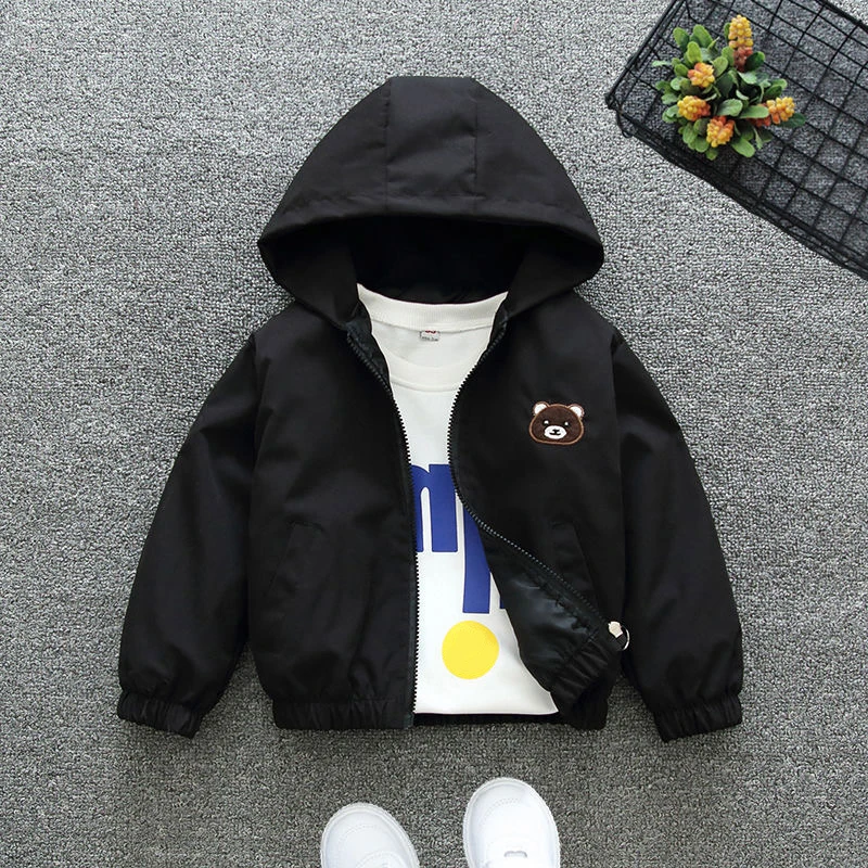 От 1 до 6 лет куртка для маленьких мальчиков ветровка с капюшоном и рисунком медведя модная верхняя одежда на молнии для девочек; Сезон весна-осень детская одежда