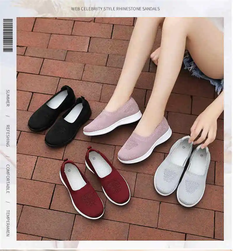 Кроссовки женские, новинка 2021, дышащие сетчатые носки без шнуровк...