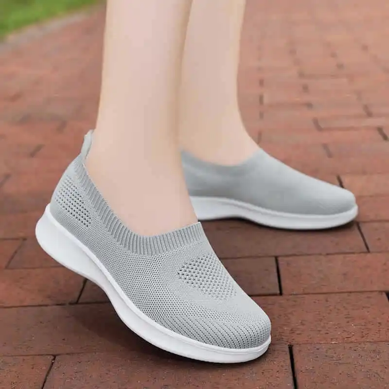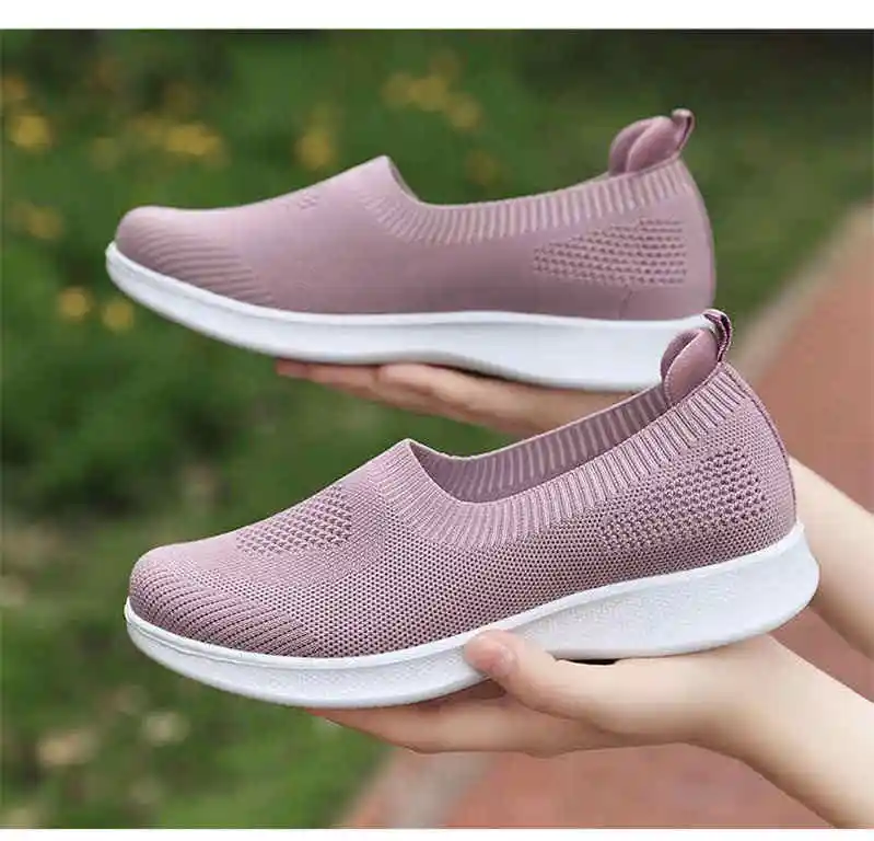 Женские кроссовки без шнуровки, дышащие сетчатые лоферы, повседневн...