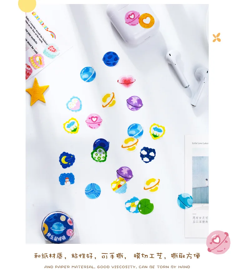 100 шт.рулон Стикеры лента Happy планет вручную учетной записи декоративная лента