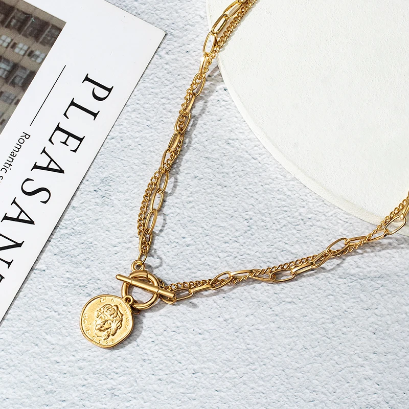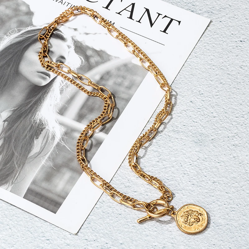 Женское Двухслойное ожерелье, толстая металлическая цепочка в стиле...