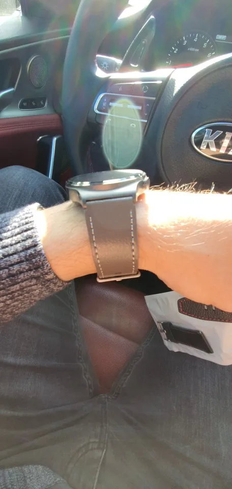 Ремешок очень страшный и на кожу даже не похоже, клеенка и клеенка. Неаккуратная и очень заметная строчка. Посылка шла две недели