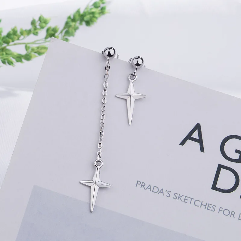 Серебряные очаровательные висячие серьги с крестом, асимметричные с...