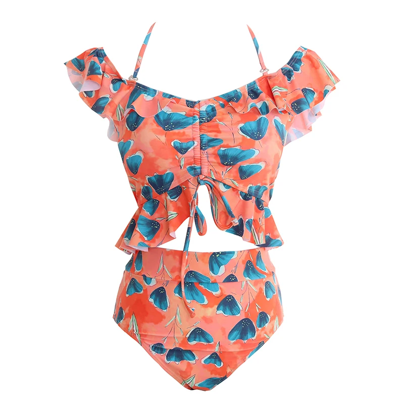 Купальник бикини с оборками, комплект для плавания с завышенной тал...