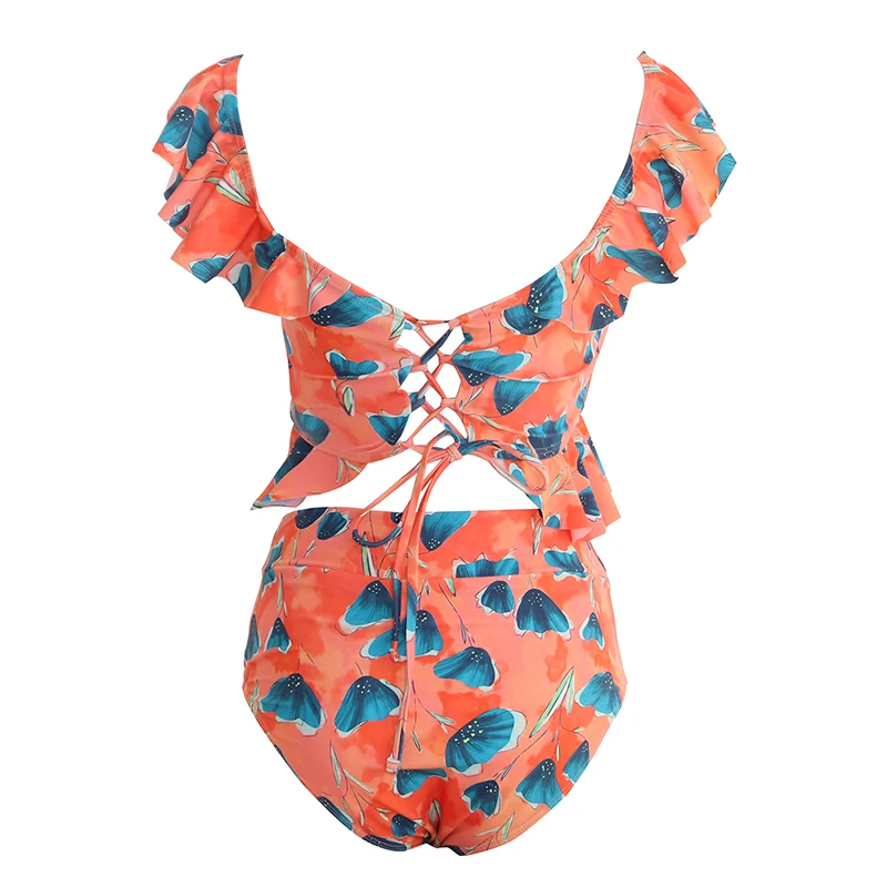 Сексуальный комплект бикини 2022, купальник с принтом в виде листьев пальмы, женский купальник с оборками, Бразильский купальный костюм с лямкой на шее, Maillot De Bain Femme