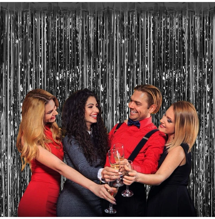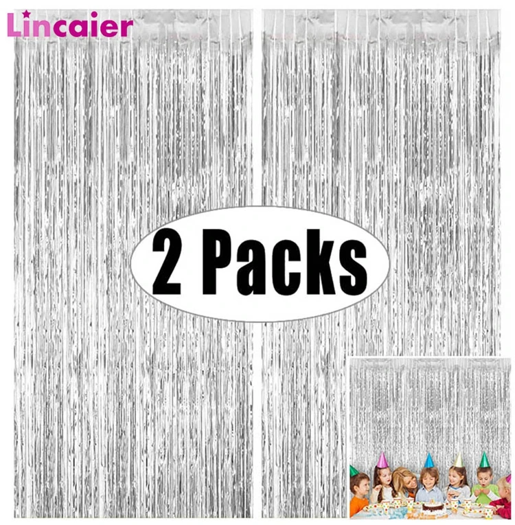 2 упаковки, 2x1 м, серебристая блестящая мишура, занавеска с бахромой, фотография, декорация для дня рождения, свадьбы, вечеринки, дома, мальчик, девочка, мужчина, женщина