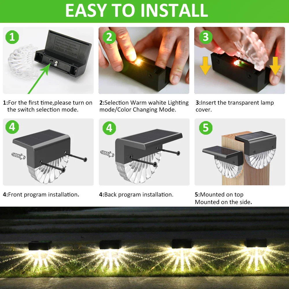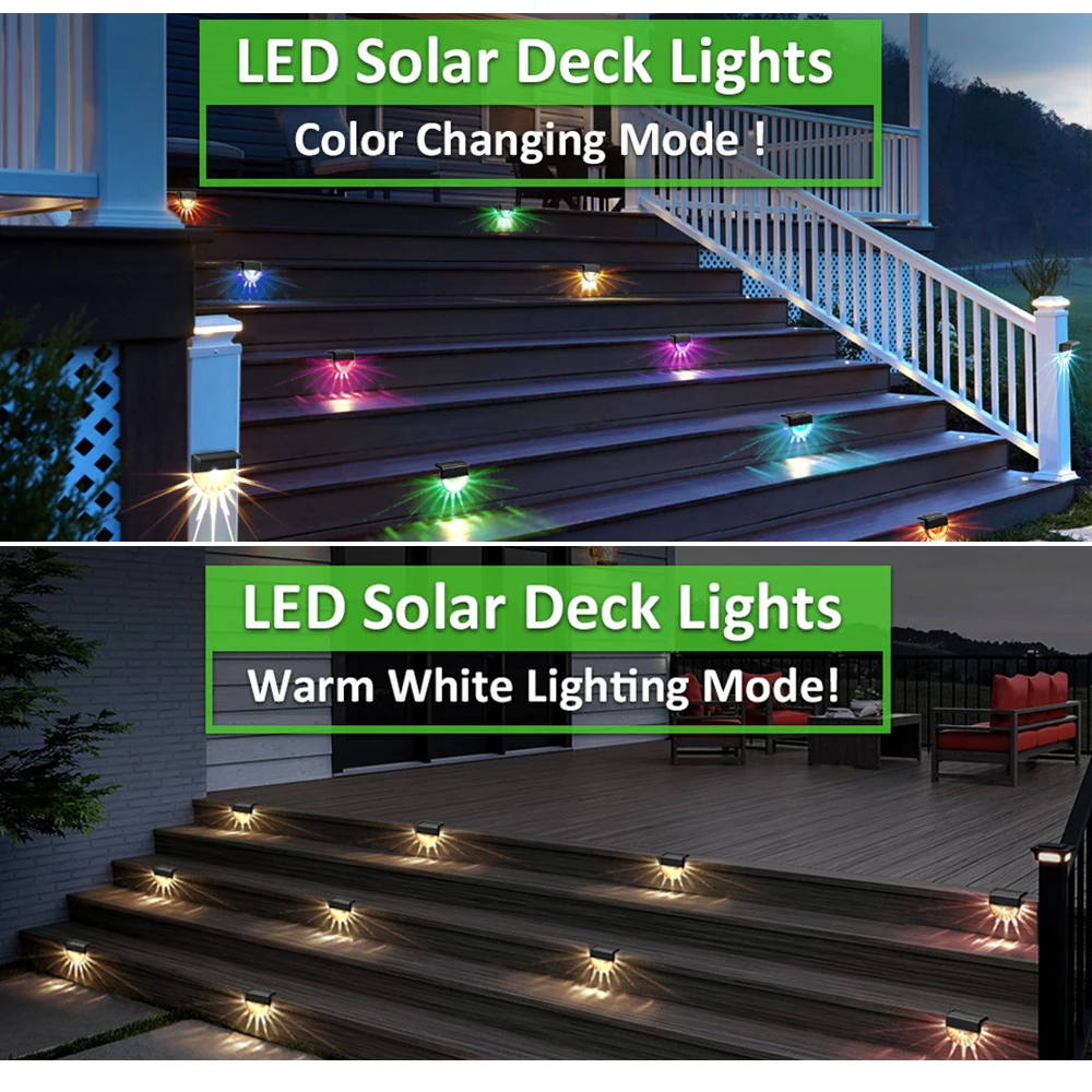 Солнечный светильник палубы Открытый водонепроницаемый светодиодный светильник забор на солнечной батарее s для патио лестницы двора сада шаг теплый белыйменяющий цвет светильник ing