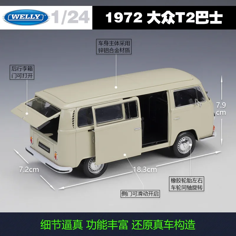 Модель автомобиля Welly 1:24 Volkswagen 1972 T2 из металлического сплава, литой и игрушечный автомобиль, коллекционные подарки, транспортировка без пульта дистанционного управления B575