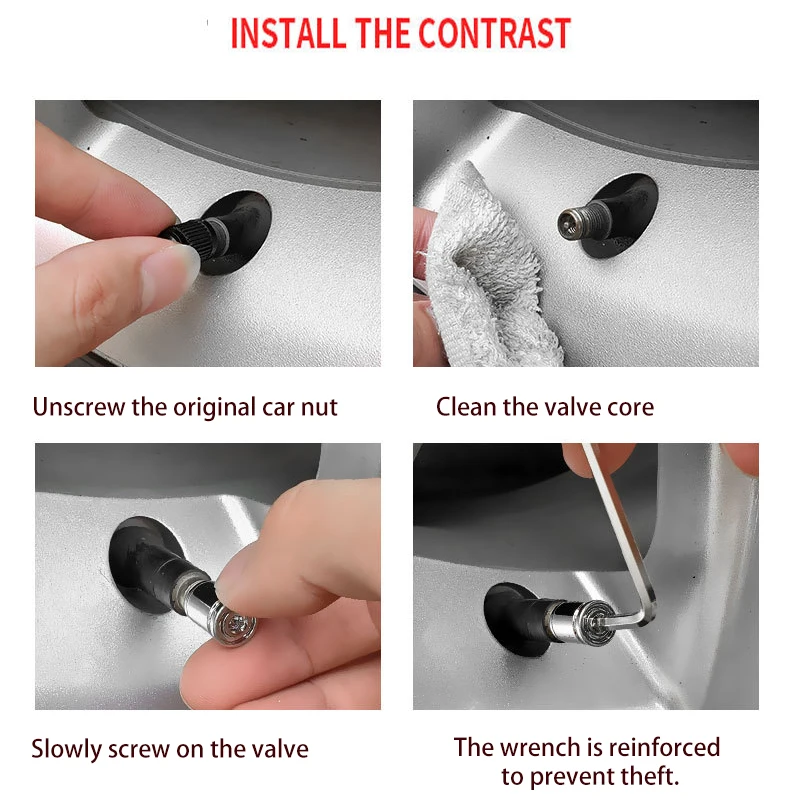 1. Защита от кражи: Эти крышки воздушного клапана были оснащены противоугонным гаечным ключом, который может плотно блокировать колпачки клапана, не легко украсть.