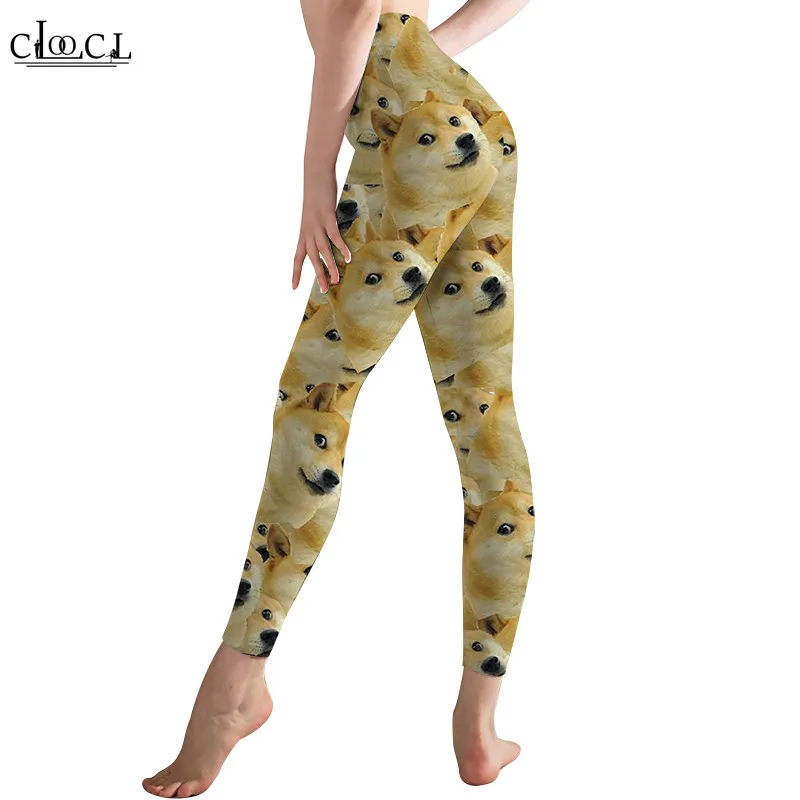 Леггинсы женские спортивные с высокой талией, эластичные, с принтом собаки Шиба-ину
