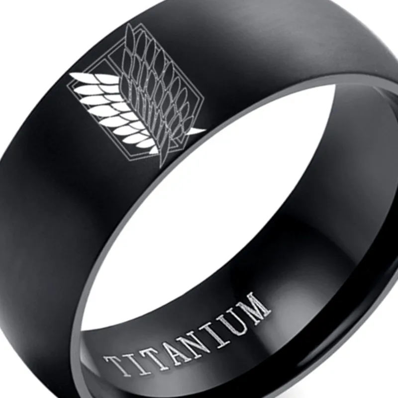 Новинка кольцо из нержавеющей стали с крыльями бриллианта На титанов 8 мм черное серебряное кольцо для мужчин и женщин ювелирные изделия для фанатов аниме