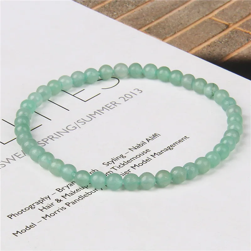 Зеленый авантюрин индийского агата 4 мм полированный Aamazonite каменные бусы Браслеты Для мужчин Винтаж стрейч-бижутерия Для женщин Для мужчин минеральной Pulsera