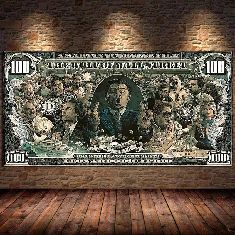 Граффити уличные деньги искусство 100 долларов холст живопись плакат и печать волк Уолл-стрит поп Куадрос для гостиной без рамы