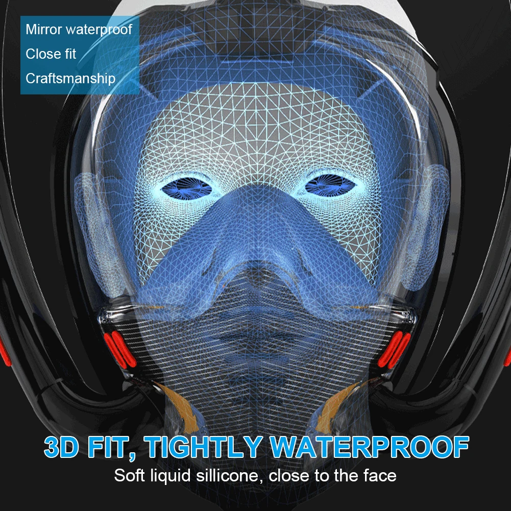 * 3. Панорамный обзор на 180 °-Сверхширокая маска изготовлена из 100% прочного и небьющегося ПК, обеспечивающего широкое поле обзора на 180 °, подкладка из жидкого силикона безопасна и удобна в носке и плотно прилегает к лицу, предотвращая просачивание воды