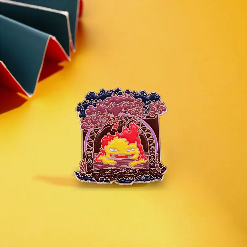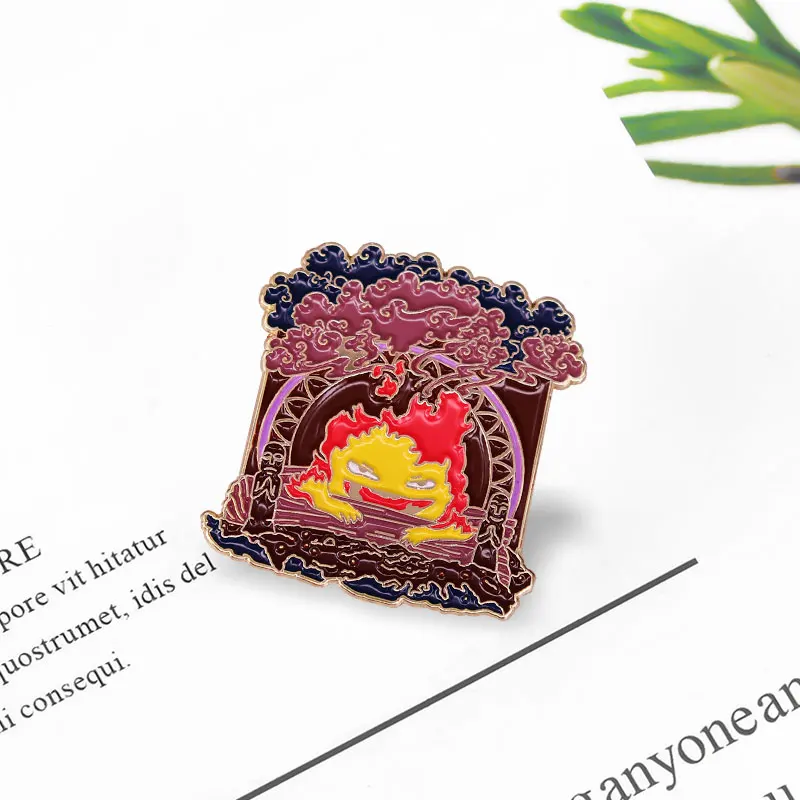 Брошь в виде хоющего замка кальцифера, булавка в виде бекона, огненного демона, аксессуары для аниме Fandom