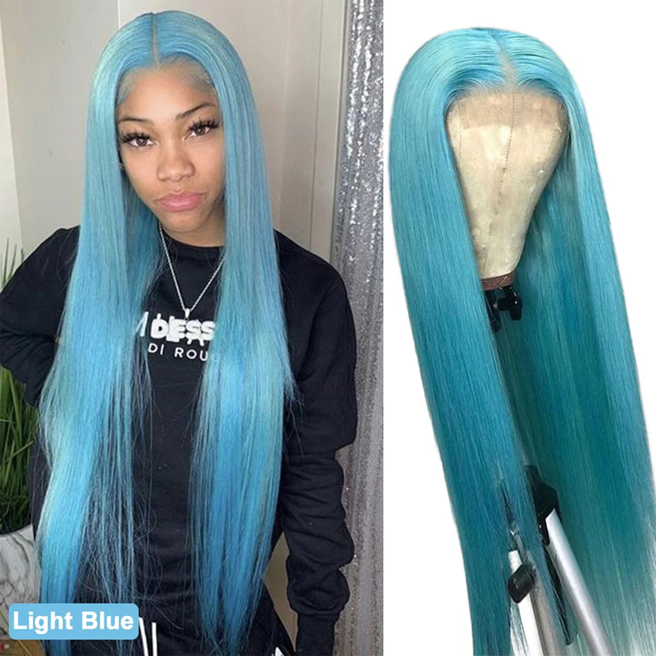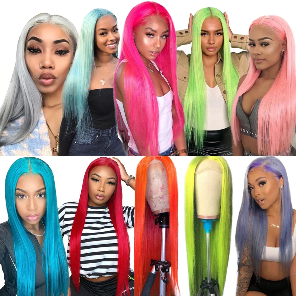 Синие парики из человеческих волос, бразильские цветные передние парики на сетке, 150 розовый, серый, оранжевый, имбирный парик, парик без повреждений, 613 T часть, парик на сетке, предварительно выщипанный