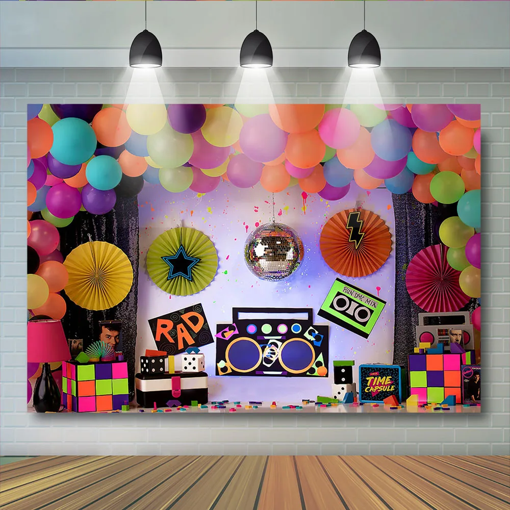 Фоны для фотосъемки в стиле 80-х рок вечерние для младшего дискотеки день рождения дети торт разбитые фоны радио воздушные шары модная Фотостудия
