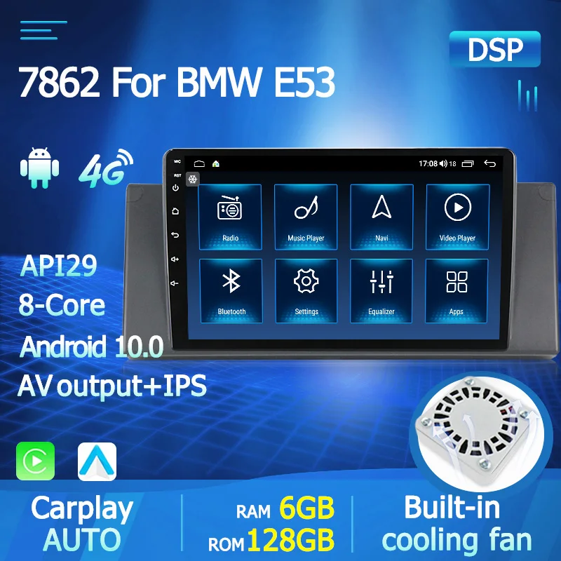 Автомагнитола Carplay DSP, 2DIN, 6 ГБ ОЗУ, для автомобилей BMW 5, E39, E53, X5, 1995-2001, 2002, 2003, 2004, 2005, мультимедийный видеоплеер, вентилятор