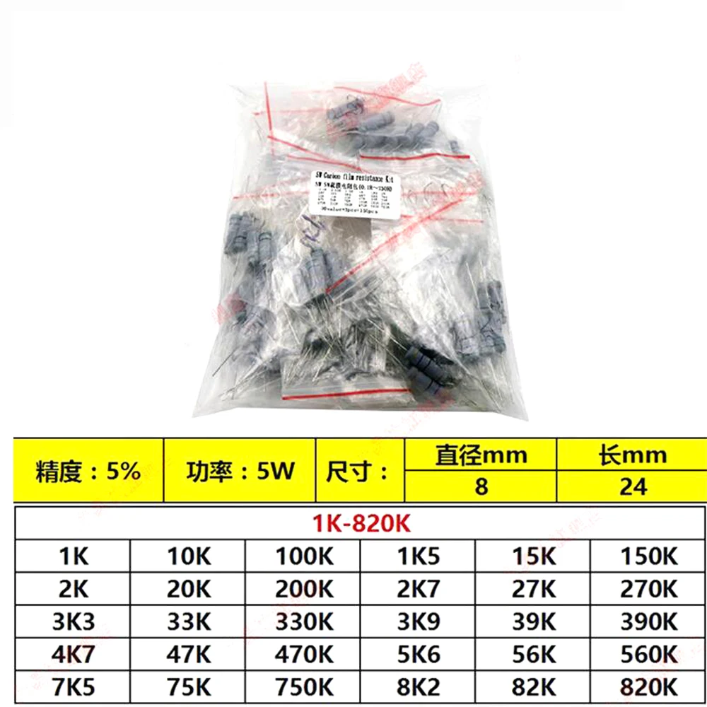 150 шт.лот 5 Вт Мощность угольный осажденный резистор комплект ассортимент набор для приготовления чая 1K ohm-820K Ом 5% сопротивление пакет 100K 10K 33K 47K 470K резисторов