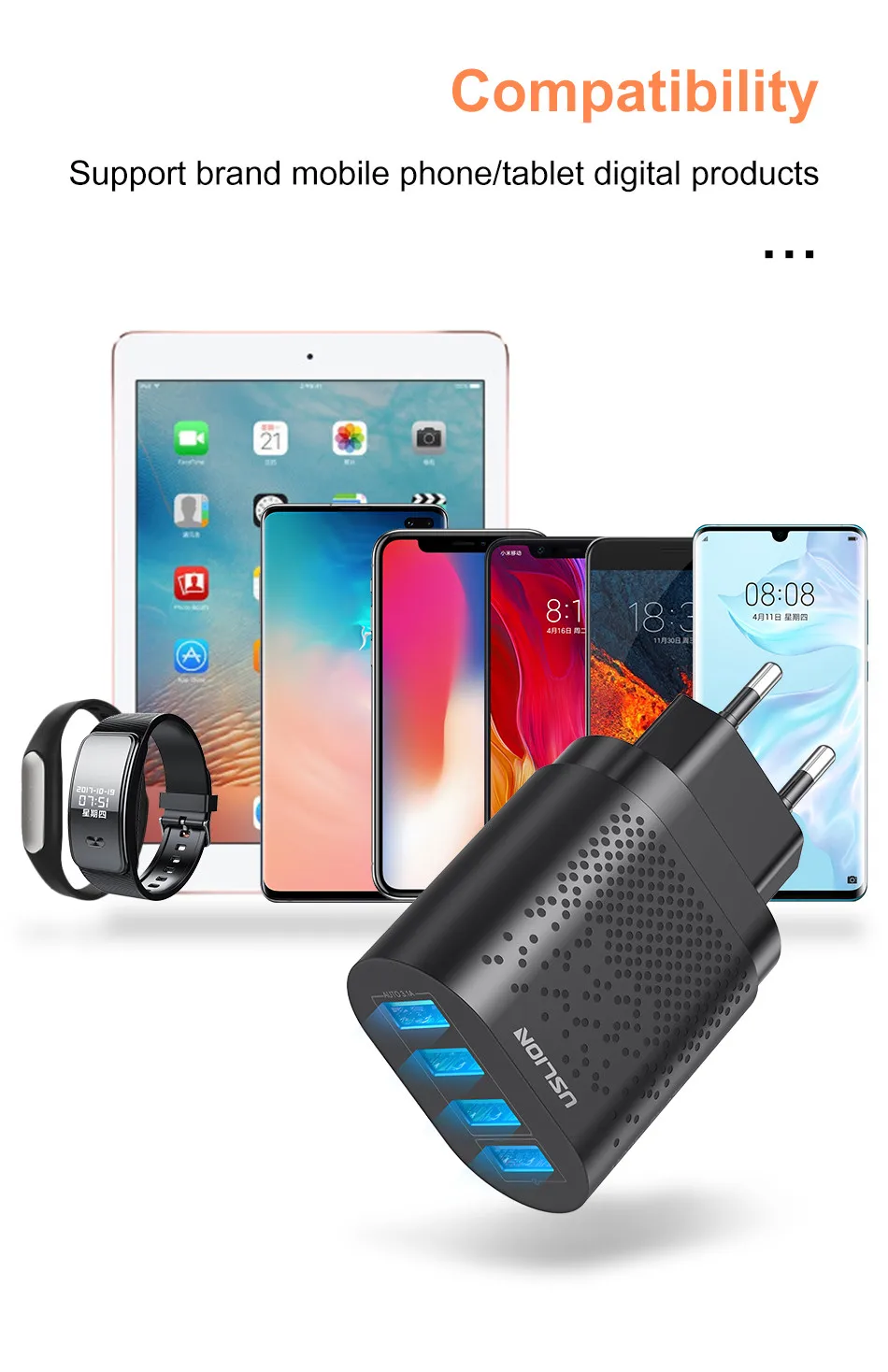 Адаптер питания USLION с 4 USB-портами для телефонов iPhoneAndroid,...