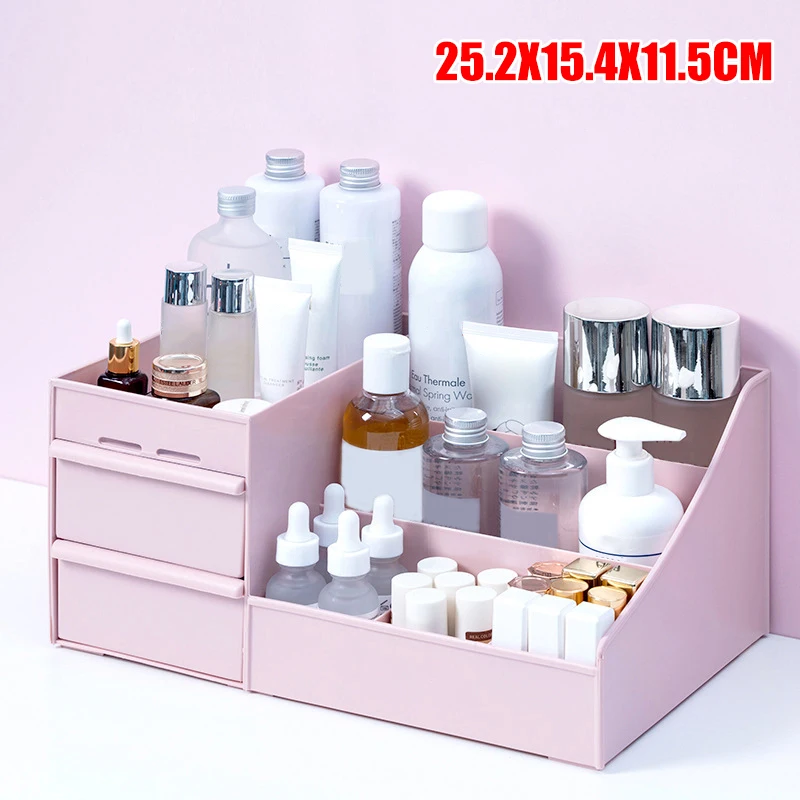 Особенности:1. Изготовлен из прочного пластика. Прочный в использовании.2. Хранит косметические предметы личной гигиены для макияжа и многое другое в пределах досягаемости.3.Множество отделений, включая два ящика, разделяют и упорядочивают ваши кисти, бутылочки, косметику и многое другое.4.Многоцелевое использование. Также делает Отличный органайзер для офисных принадлежностей, товары для рукоделия и т. Д.5. Помогает сделать рабочий стол более аккуратным и вдали от смешивания.