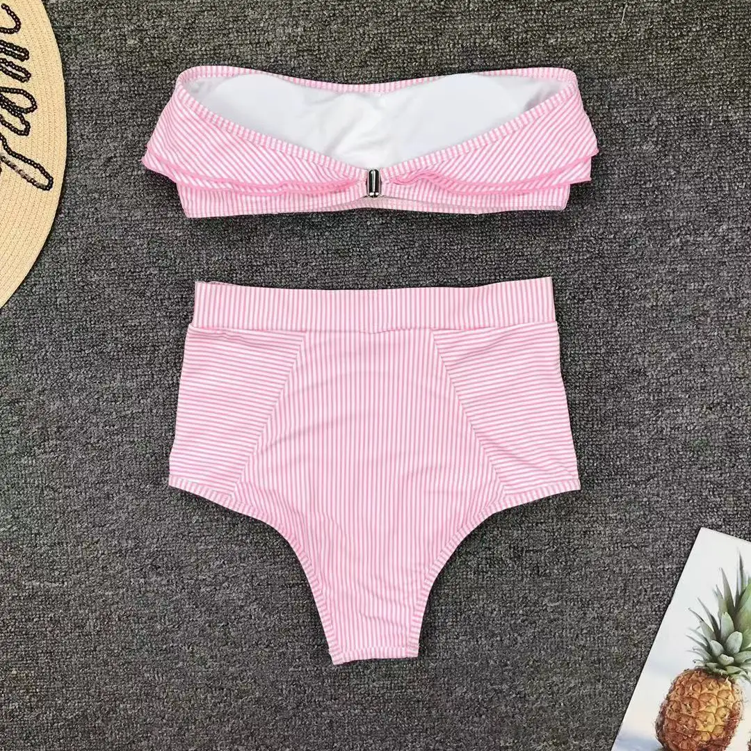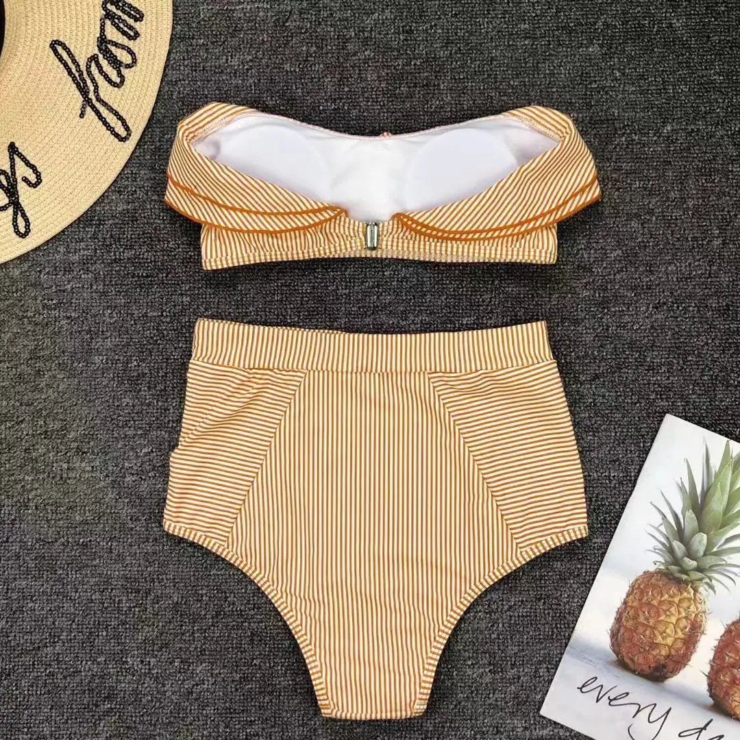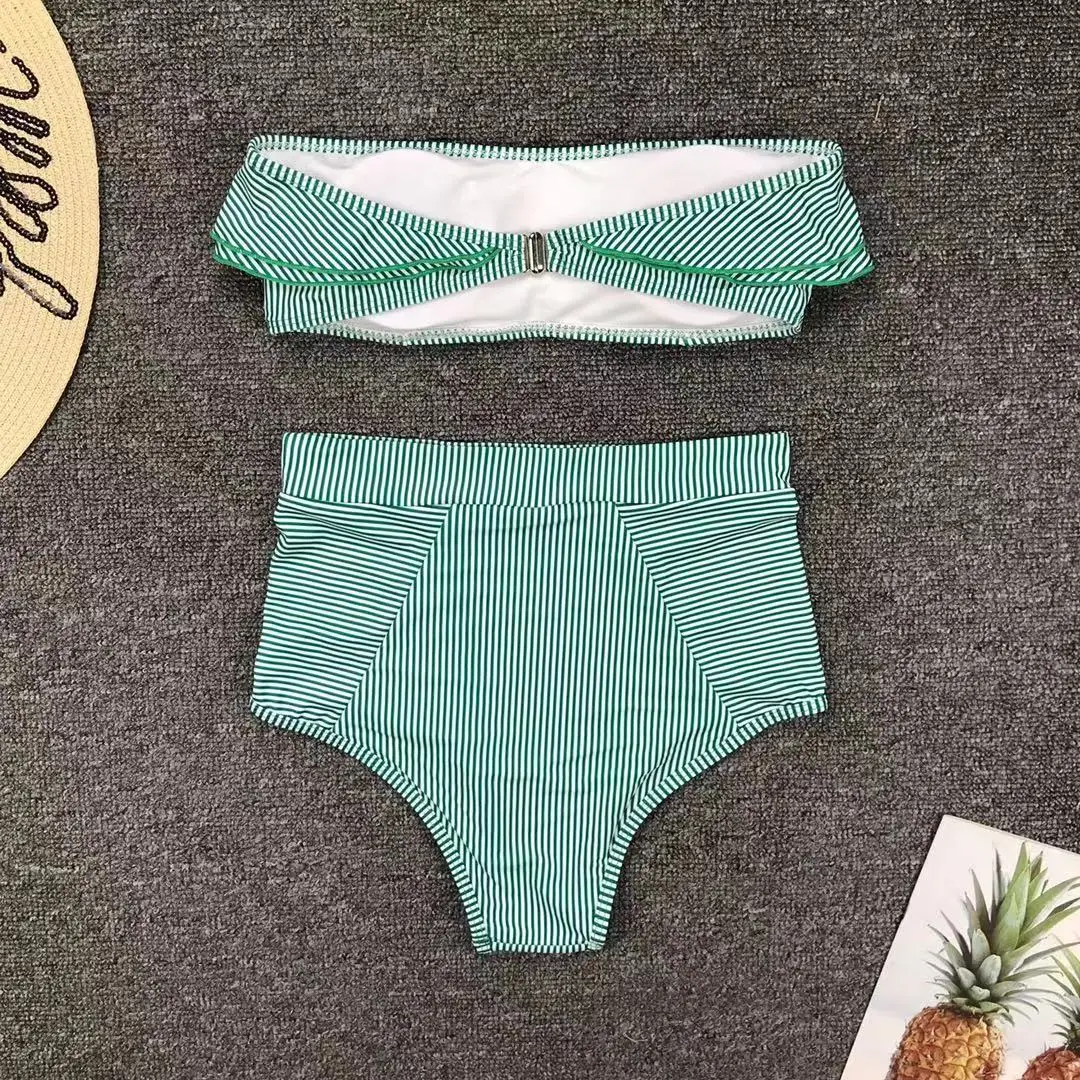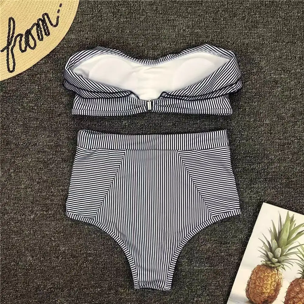 Женский полосатый купальник ZTVitality, бикини без бретелек, с высо...