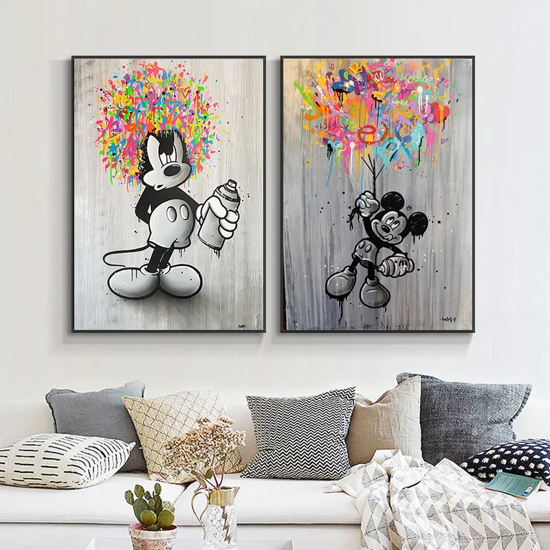 Мультяшный Микки Маус граффити художественный холст плакат и принты черно-белые картины настенное искусство для декора гостиной