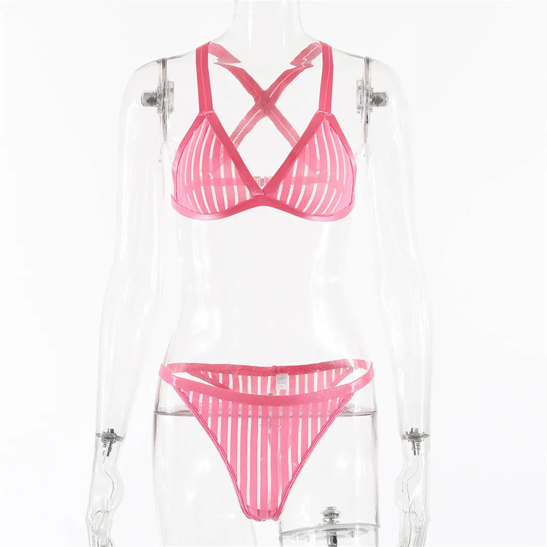 Сексуальный крошечный женский купальник в рубчик, 5 цветов, комплек...