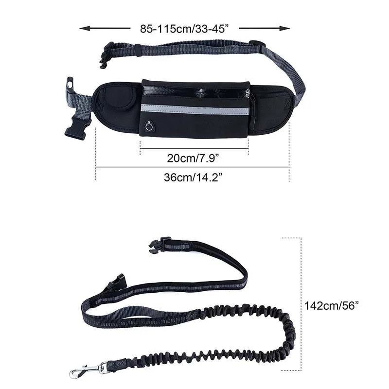 Поводок для бега собак с поясным карманом, регулируемый ремень, противоударный, светоотражающий, подходит для собак до 45 дюймов