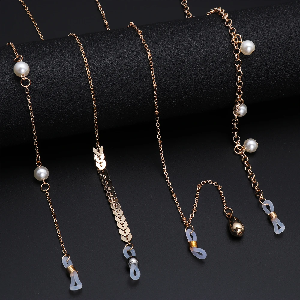 Цепочка для солнцезащитных очков Женская, модная цепочка с жемчугом, золотистая цепочка для очков, держатель для очков, ожерелье, аксессуары