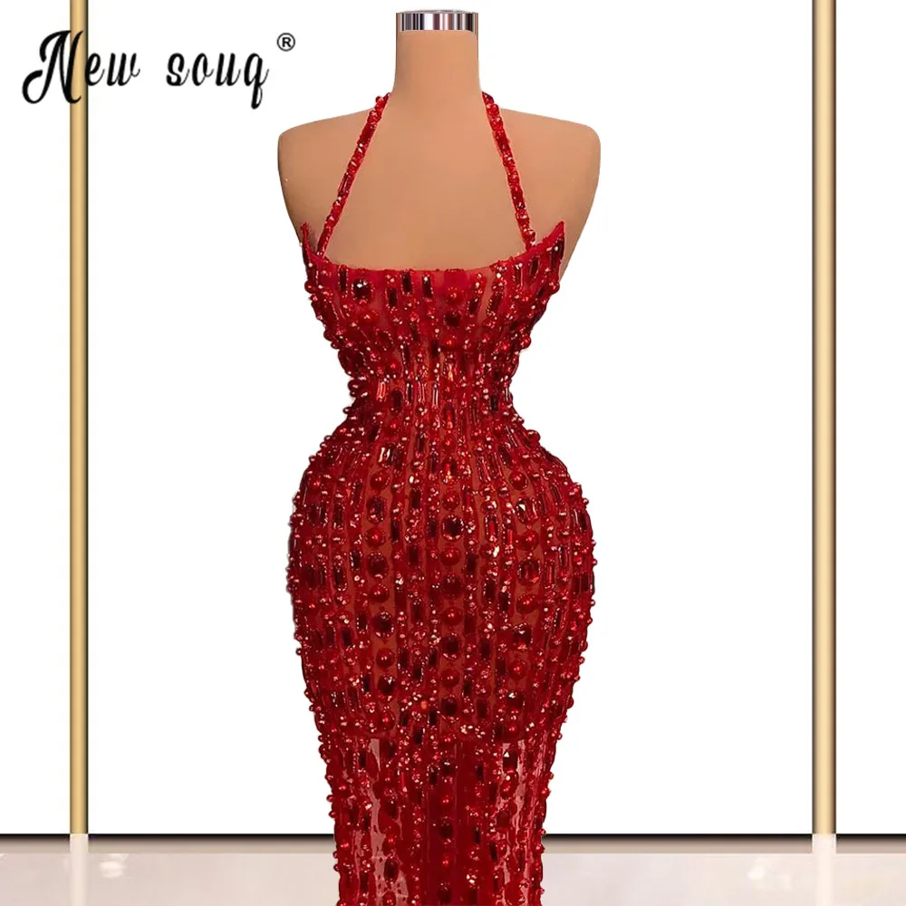 Вечернее платье-Русалка с блестками, с V-образным вырезом, красное, без рукавов, для выпускного вечера, 2021