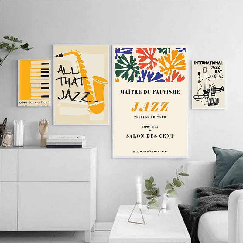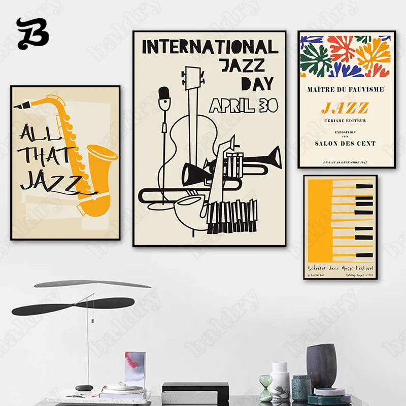 Винтаж музыкальный инструмент Плакат стены искусства Джаз гитара фортепиано картина с цитатой настенные картины для Гостиная украшение дома