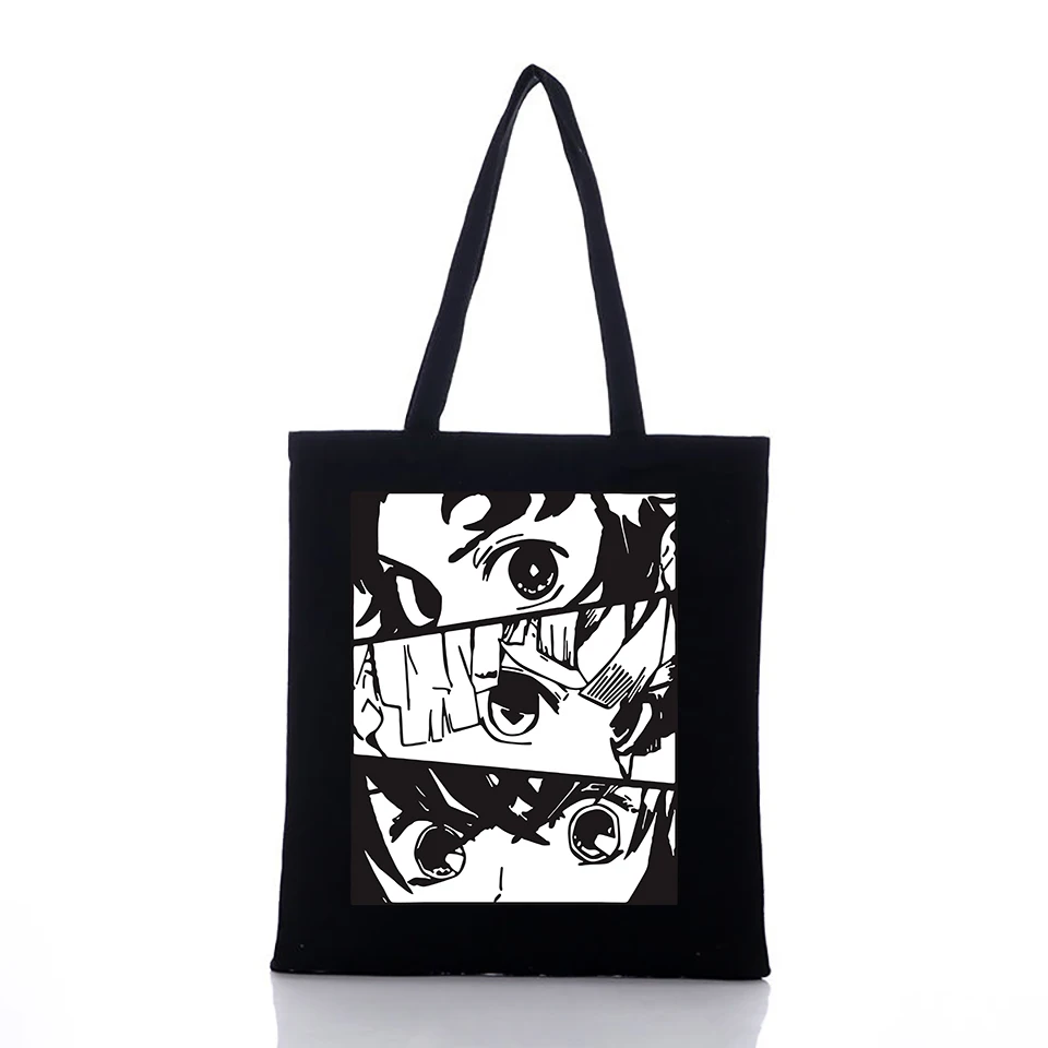 Холщовая Сумка для покупок с мультяшным аниме Demon Slayer Kimetsu no Yaiba, холщовые сумки Harajuku с логотипом на заказ для девушек и дам