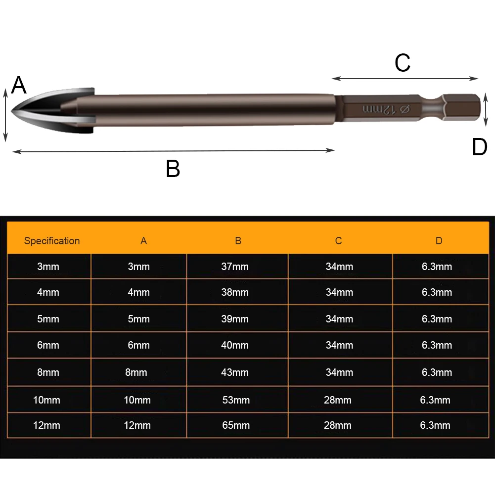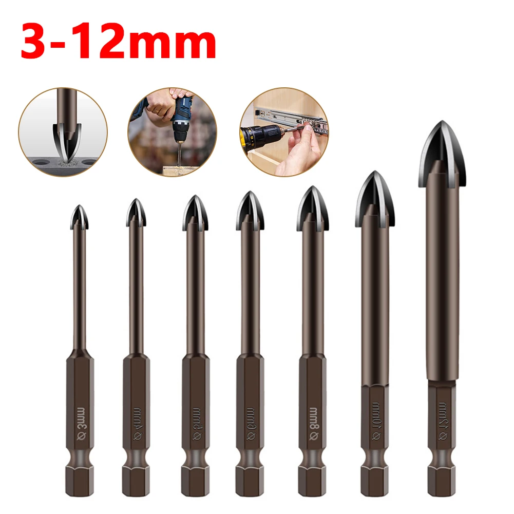 Сверла для плитки с шестигранным хвостовиком 3-12 мм, Открыватель отверстий для стекла, керамики, бетона, 14 дюйма, инструменты для сверления кирпича с шестигранным хвостовиком, из твердого сплава