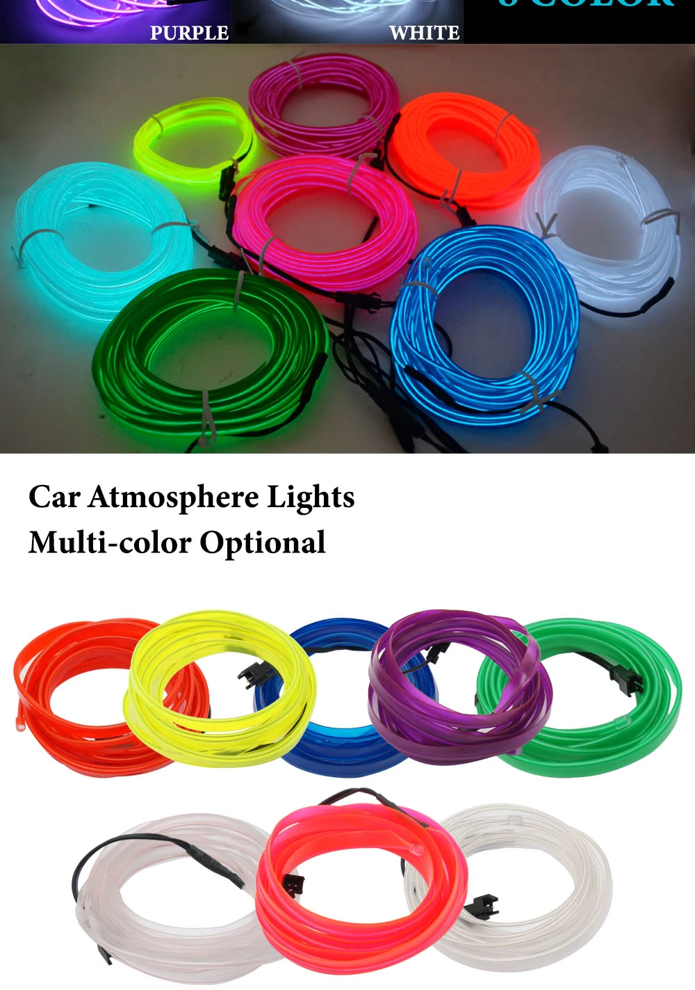 Автомобильная светодиодная лента для внутреннего освещения 1 м/2 м/3 м/5 м, Декоративная гирлянда, Проволочная веревка, гибкая неоновая лампа с приводом для сигарет