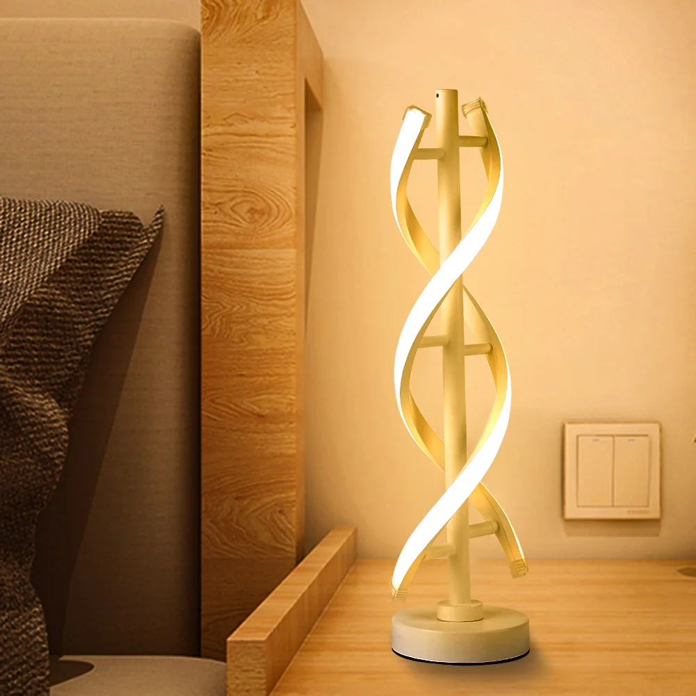 Современная светодиодная спиральная настольная лампа 12 Вт, изогнутая полоса в минималистичном дизайне, теплый белый светильник, акрилосветильник освещение, украшение для спальни